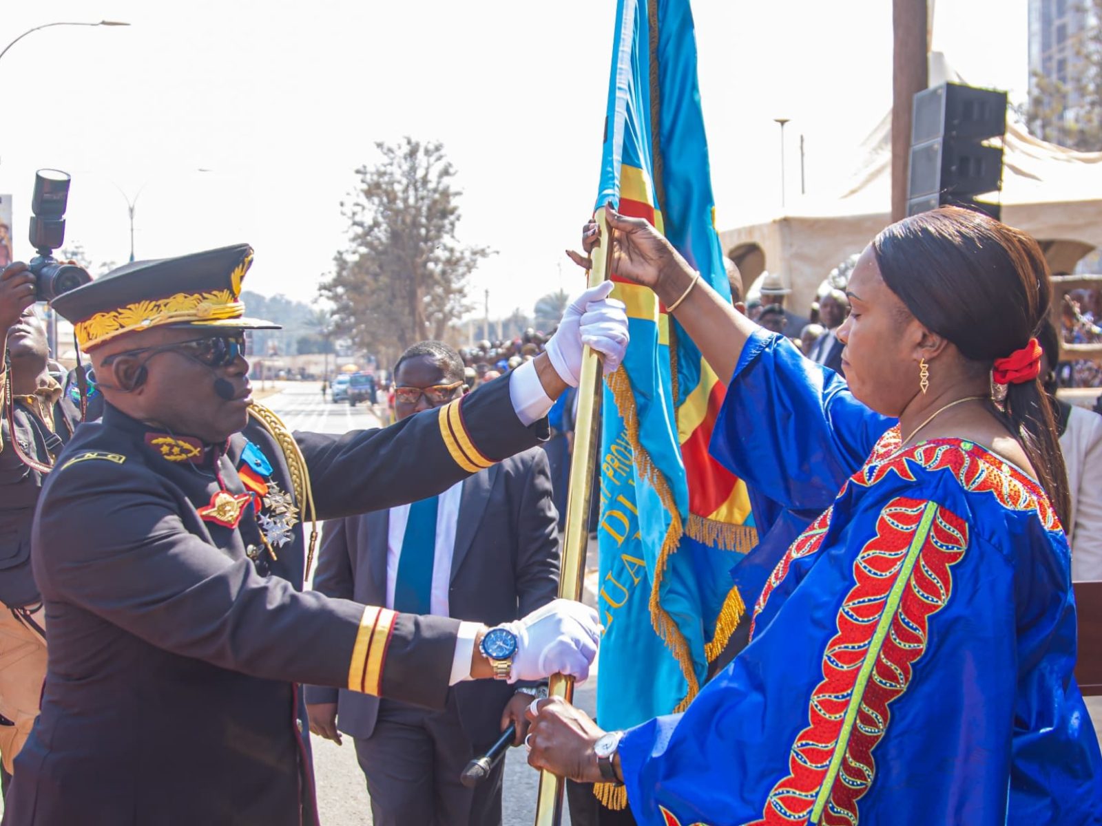 C’est dans un décor républicain soigneusement agencé, au pied de la tribune officielle, que la Gouverneure du Lualaba, Fifi Masuka Saïni, a procédé à la remise protocolaire de l’étendard national au tout nouveau Commandant Provincial de la Police Nationale Congolaise, le Commissaire Divisionnaire Roger Isiyo. Ce geste symbolique et stratégique, consacre l’autorité du nouveau chef de la police dans la province, tout en l’investissant de l’honneur et du poids des responsabilités qui incombent à sa charge.