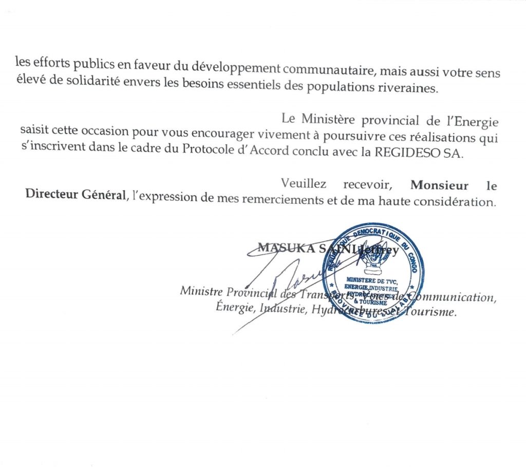 Dans une correspondance officielle datée du 14 août, le ministre provincial de l’Énergie, des Transports et des Voies de communication du Lualaba a félicité la société minière COMMUS SAS pour son implication dans la mise en service d’un forage destiné à améliorer l’accès à l’eau potable de la population de Kolwezi. Cette initiative s’inscrit dans le cadre du protocole conclu avec la REGIDESO.