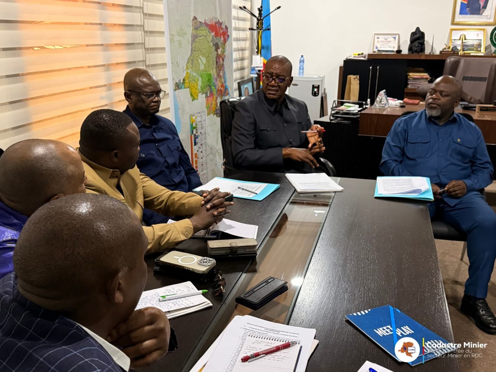Une délégation de parlementaires, conduite par le député national Michel Moto, a été reçue le jeudi 4 septembre 2025 par les dirigeants du Cadastre Minier (CAMI), à savoir Popol Mabolia Yenga, Directeur Général, et Jacques Muyumba Ndubula, Directeur Général Adjoint.
