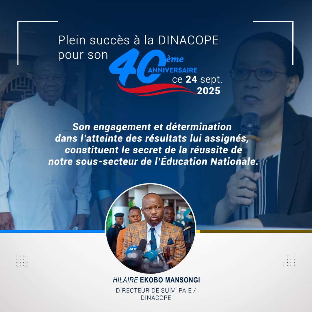 Le 24 septembre 2025 marque une étape historique pour la Direction Nationale de Contrôle et de la Paie des Enseignants (DINACOPE), qui célèbre fièrement son 40e anniversaire.